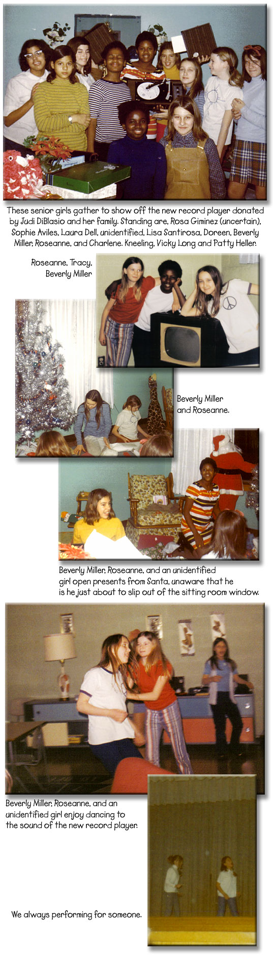 My name while at the Village was Lisa Santirosa. I arrived in October of 1969. Around February 1970 a young lady came to volunteer her time with us. Her name is Judi DiBlasio. She lived in nearby Demerest. During Christmas time in 1970 Judi and her family donated a brand new record player to the senior girls and invited all of us who did not go home to their house for Christmas.