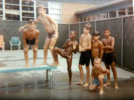 Many great memories of days spent at the village pool. Michael Munzial is the first on the diving board, JJ Gaines is third, others unidentified. PHOTO BY JOE STUTZ