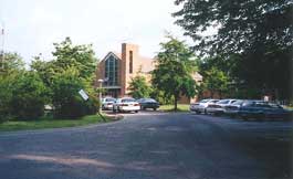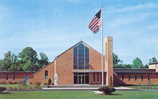 A period of time before we took our winter tour of the Village in preparation for the "Virtual Tour of the Village Today," LoriAnn went on her own pilgrimage and captured on film several examples of the Village as it stands today with the trees in full bloom. You will notice that the trees and bushes have grown immensely from what we remember in the 60s. The postcard photo of the front of the chapel shows what it was like in 1963.