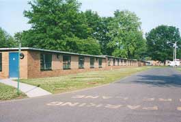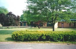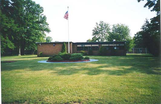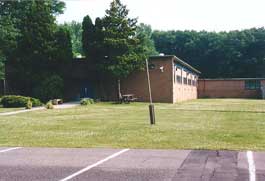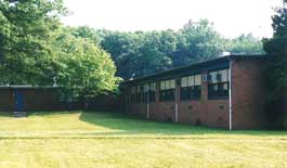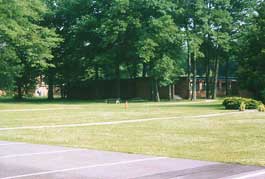 The boys' cottages are receding into a forest of trees that once were not much taller than the boys that helped plant them in the early 60s. The Gymnasium is in the distance on the left and the Senior Boys Cottage is on the right.
