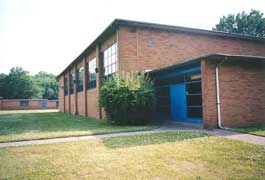The Gymnasium/Auditorium is pictured on the left and the boys end of the main corridor is on the right.